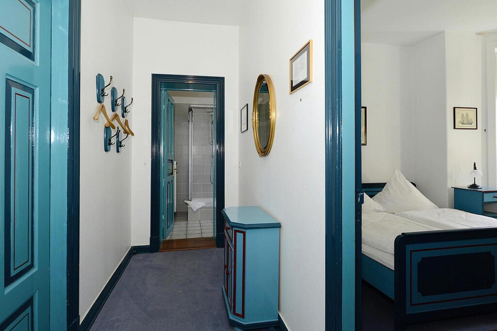 Zentrale aber ruhige Lage, nur zwei Minuten von Strand und Kurpromenade sowie fünf Minuten vom Wellenbad entfernt. Das historische Wyker Gästehaus wurde 1918 im Bäderstil erbaut und später mit viel Liebe und großer Sorgfalt restauriert. Ihr Aufenthalt in diesem Haus versetzt Sie um 80 Jahre zurück in die gute alte Zeit. Die Wohnungen tragen die Namen von alten Föhrer Kapitänen und Honoratioren. Abstellmöglichkeiten für Fahrräder befinden sich hinter dem Haus, Ihr Auto können Sie in der Seitenstraße parken. Das Stadtbild von Wyk auf Föhr wird geprägt von gemütlichen Friesenhäusern und verwinkelten kleinen Straßen. Zahlreiche Restaurants und Cafés mit Meerblick bieten die Möglichkeit, die wunderschöne Ruhe auf einer Insel auf sich wirken zu lassen. Die kleine Hafenstadt mit ihrem kilometerlangen Sandstrand und Parkanlagen mit teilweise exotischen Pflanzen ist ein perfekter Ort, um Abstand vom Alltag zu nehmen und so richtig aufzutanken.