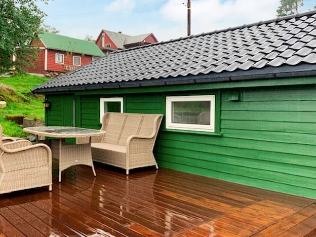 Ferienunterkunft unmittelbar am Fensfjord, umgeben von Küste und Gebirge mit guten Wandermöglichkeiten, z.B. zum Stølsheimen. Die Endreinigung ist bei diesem Haus im Mietpreis eingeschlossen. Das Ferienhaus ist hell und wohnlich eingerichtet und bietet herrlichen Fjordblick vom Essplatz am Fenster. Außerdem steht eine etwa 50 m² große Terrassenfläche am Haus bereit. Der Holzofen im Wohnzimmer sorgt an kühleren Tage für mollige Wärme. Zur technischen Ausstattung gehören auch WLAN (500 Mbit) und TV via Altibox mit einigen internationalen Sendern, darunter auch mehrere deutschsprachige, zur Auswahl.
